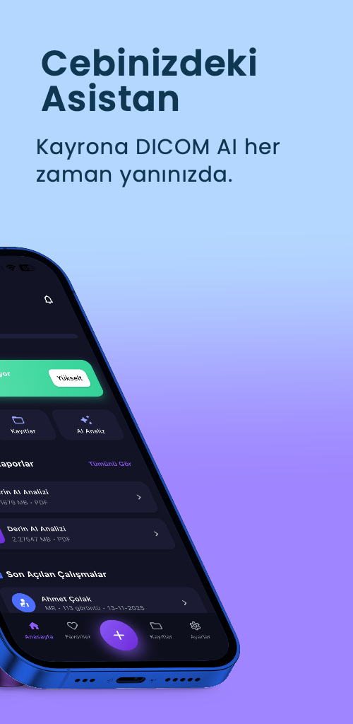 Kayrona; DICOM görüntüleme deneyimiyle AI destekli analiz akışını tek bir üründe birleştirir. Hızlı görüntüleme, net rapor akışı ve modern bir kullanıcı deneyimi.